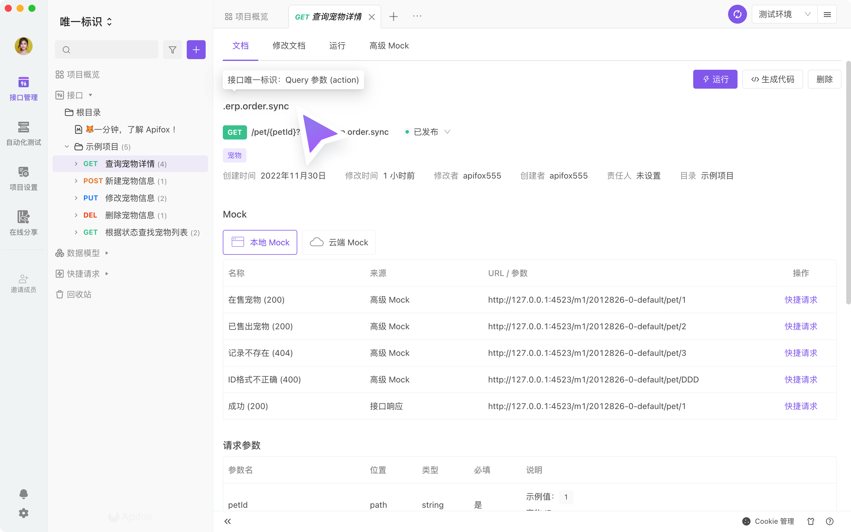 接口唯一标识,在导入 Swagger 并更新全部目录时,请避免全部项目导入到根目录进行更新,推荐设置为接口唯一标识的接口单独导入到该特殊子目录中。