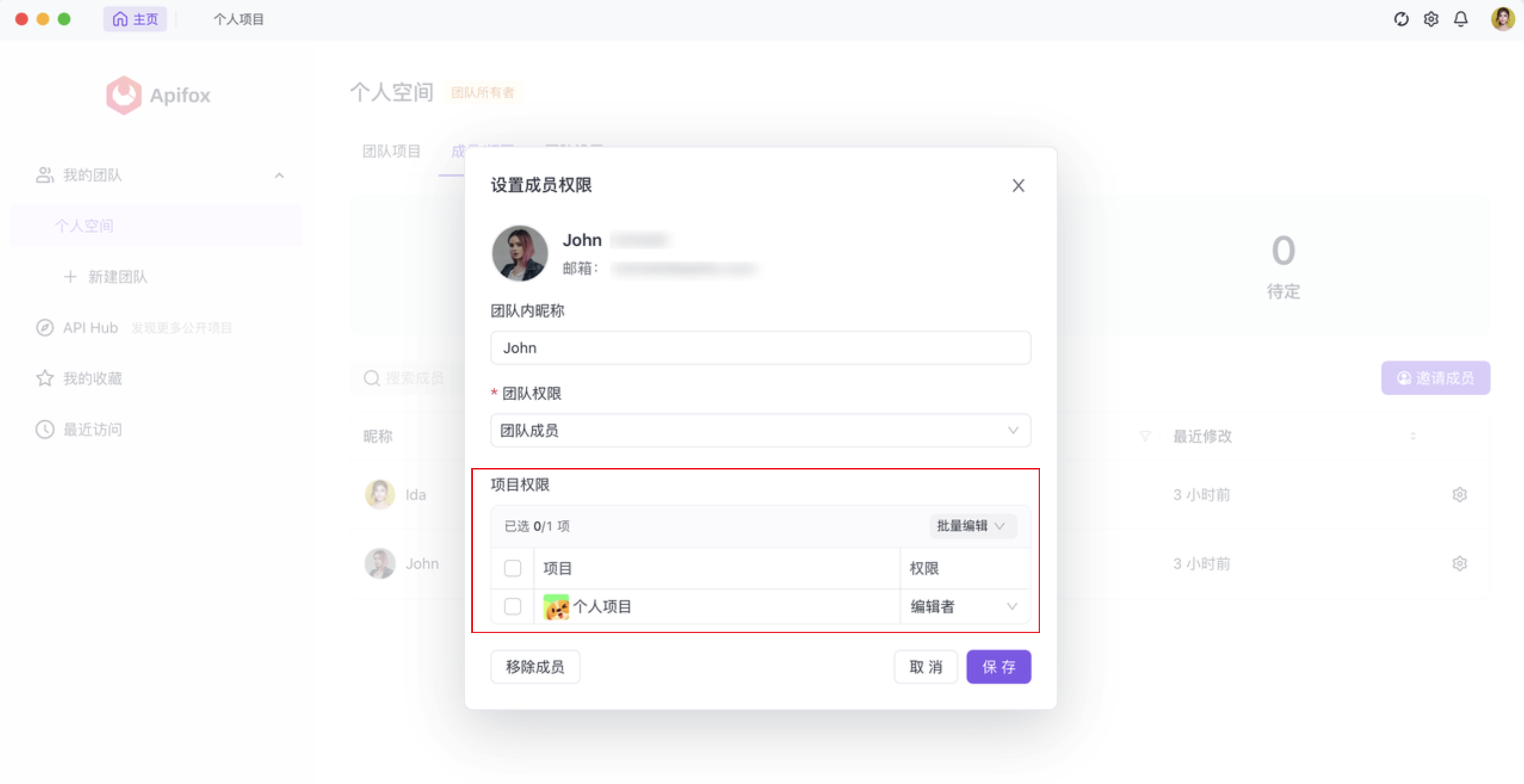 1.当你发送邀请时,可以指定邀请对象参与当前团队的特定项目,并设置他们的权限级别。